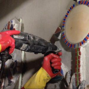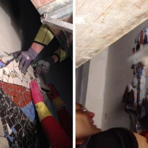 Steinchen für Steinchen? Oder mit starkem Klebeband aus dem Putz lösen? Wie nimmt man ein Mosaik von einer Wand, restauriert es und bringt es an anderer Stelle unzerstört wieder an? Wir von der Antikwerkstatt Siegen wussten es auch nicht ganz genau, als wir den Auftrag erhielten, Reinhold Koehlers Mosaik „Albertus Magnus“ von seinem angestammten Platz in der Schule abzunehmen, um es vor dem Abrissbagger zu retten, und im neuen Ambulanten Zentrum Albertus Magnus des Siegener Marienkrankenhauses wieder anzubringen. Aber mit guter Beratung in Detailfragen konnte die Arbeit beginnen. Mit starkem Tapeband beklebten und fixierten wir die gesamte Mosaikfläche, mit speziellen Meißeln lösten wir das Mosaik in seinem Putz von der Wand, sicherten die einzelnen, großen Teilstücke auf Platten, lagerten sie und restaurierten behutsam, wo nötig. Als Orientierung für die originalgetreue Wiederbefestigung nutzten wir Fotos, die wir vor der Abnahme machten, und eine genaue Rasterzeichnung. Wie überzeugend das Ergebnis ist, ist am neuen Ort, im Ambulanten Zentrum AM des Marienkrankenhauses, zu erleben!